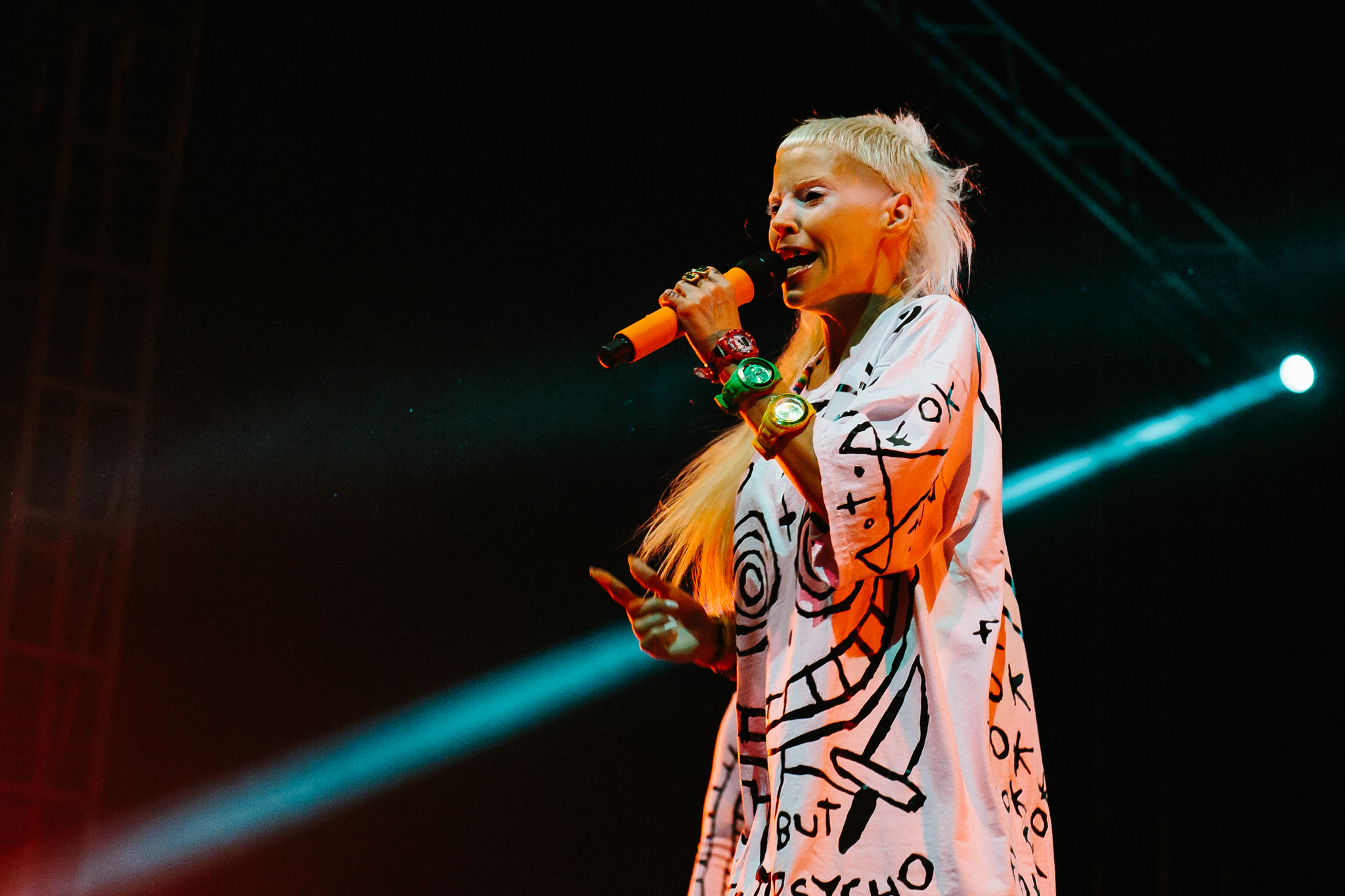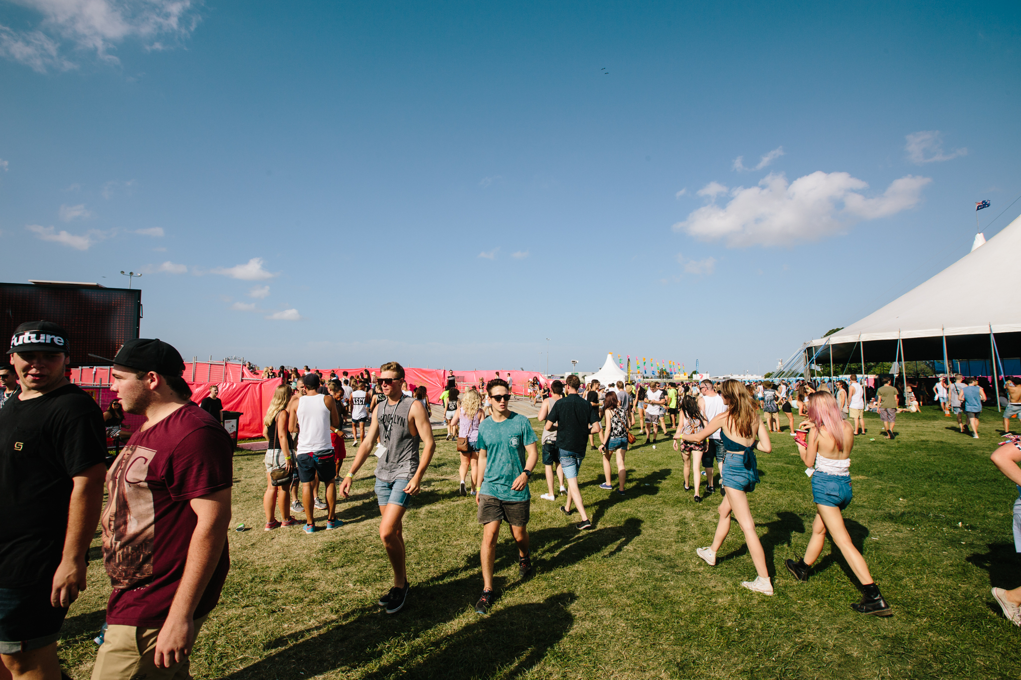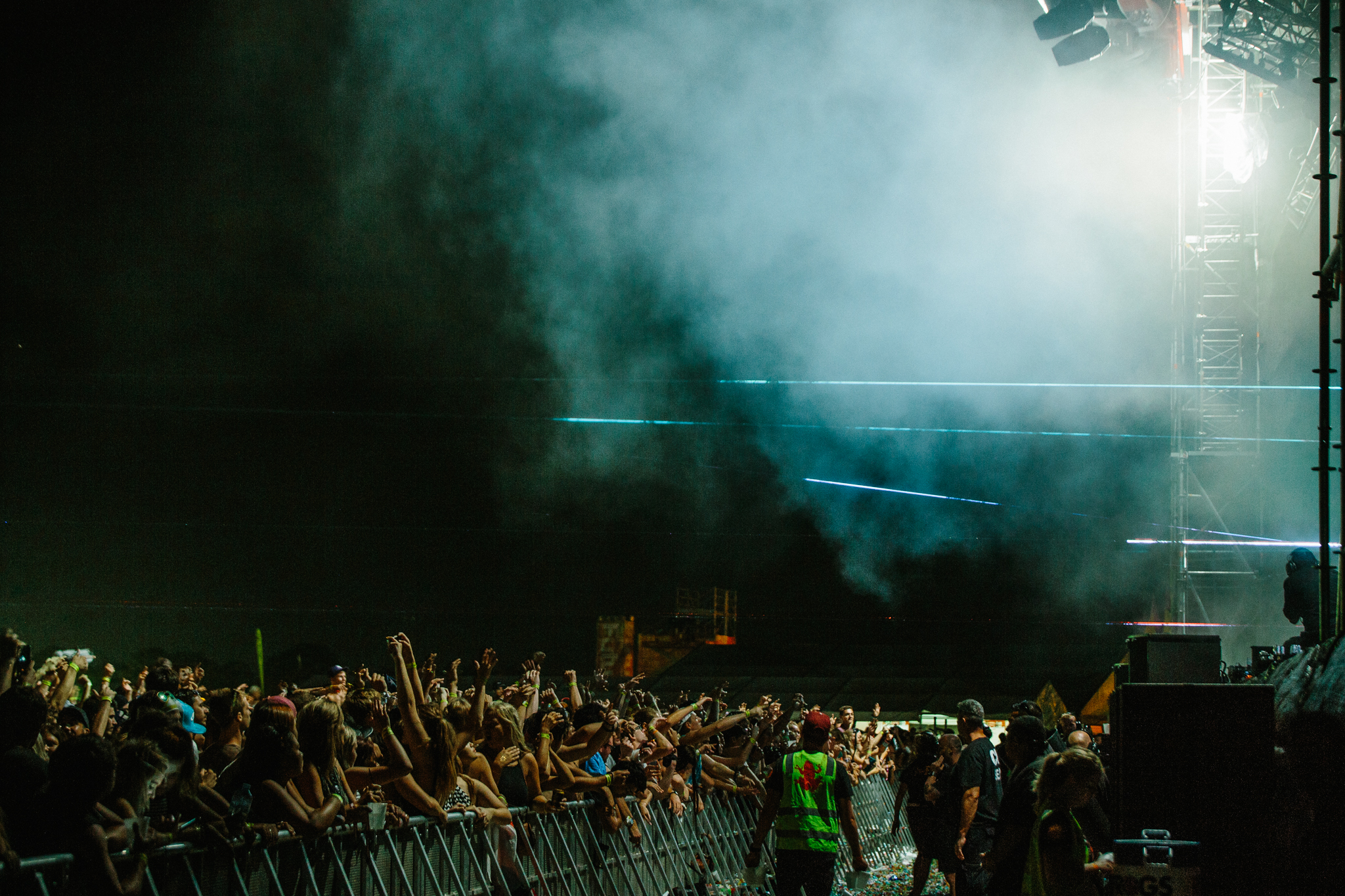 Pupils were pulsating and confetti, flames and smoke filled the skies. A sea of tight crop tops and ass riding shorts tried their best to keep their owners decencies clothed but hey, its Future? Does anyone really care if your massively trippin’ new friends muffin top is rubbing up against you while Yolandi is showing you how its done? It’s not their fault those $5 Dagwood Dogs are pretty damn awesome.