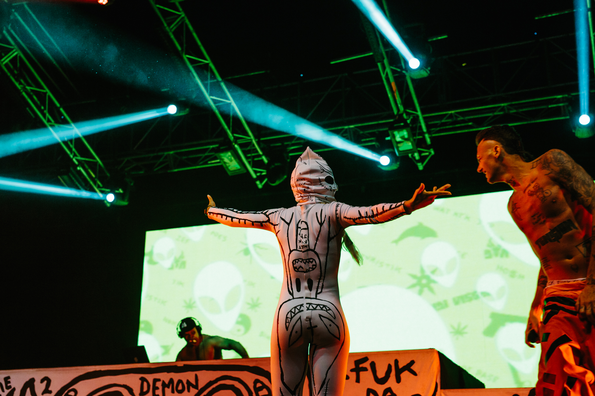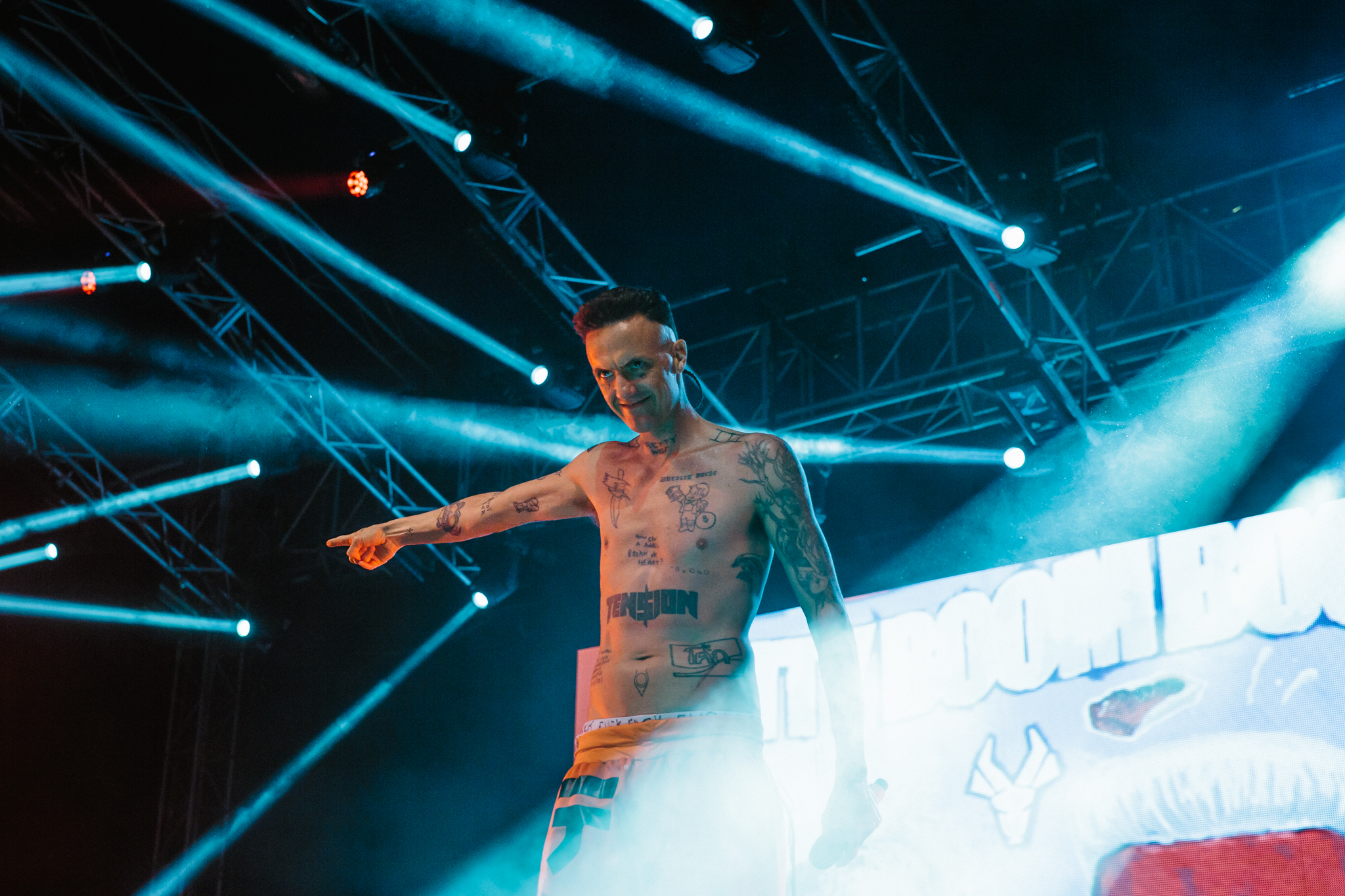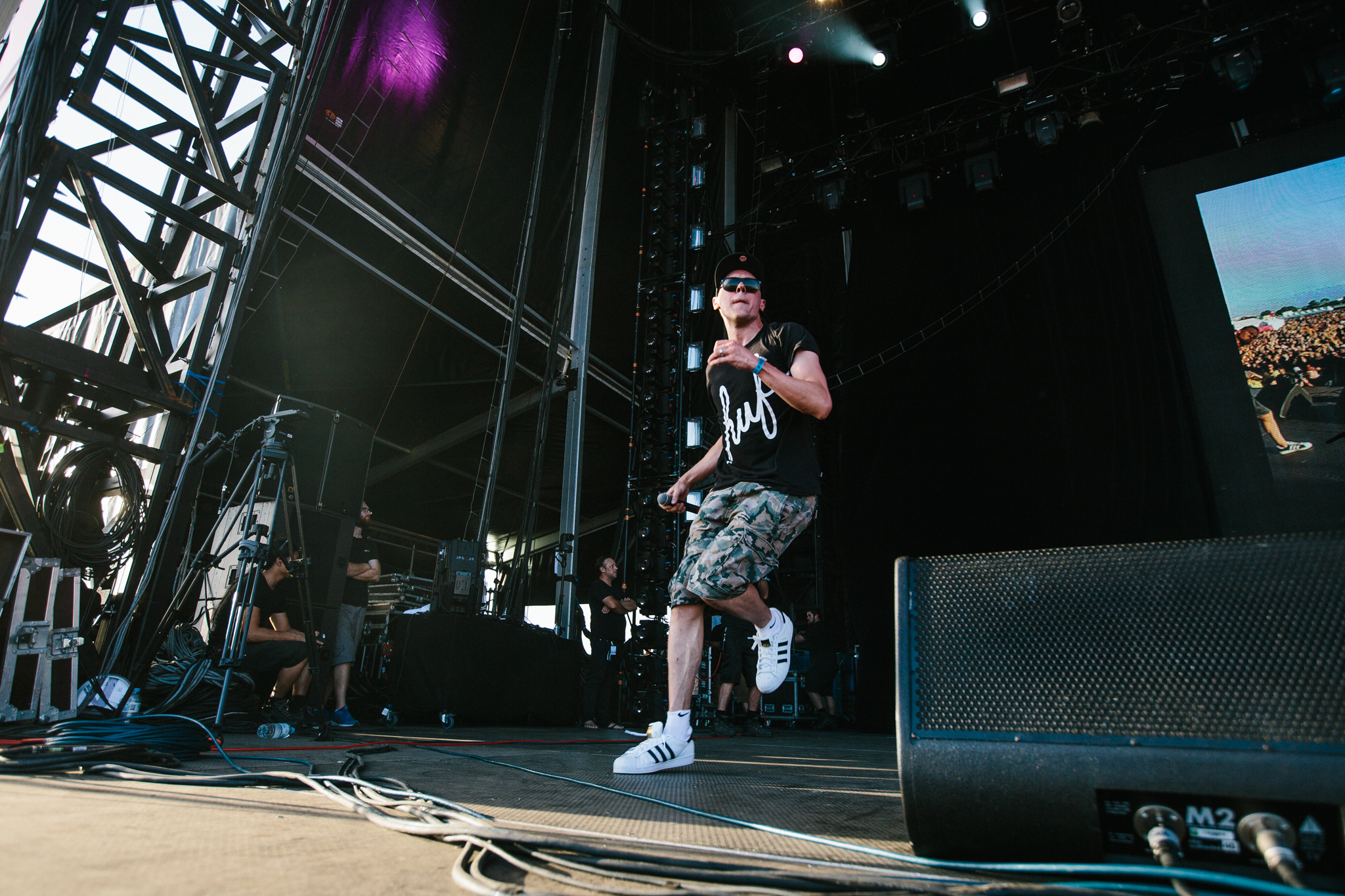 Pupils were pulsating and confetti, flames and smoke filled the skies. A sea of tight crop tops and ass riding shorts tried their best to keep their owners decencies clothed but hey, its Future? Does anyone really care if your massively trippin’ new friends muffin top is rubbing up against you while Yolandi is showing you how its done? It’s not their fault those $5 Dagwood Dogs are pretty damn awesome.