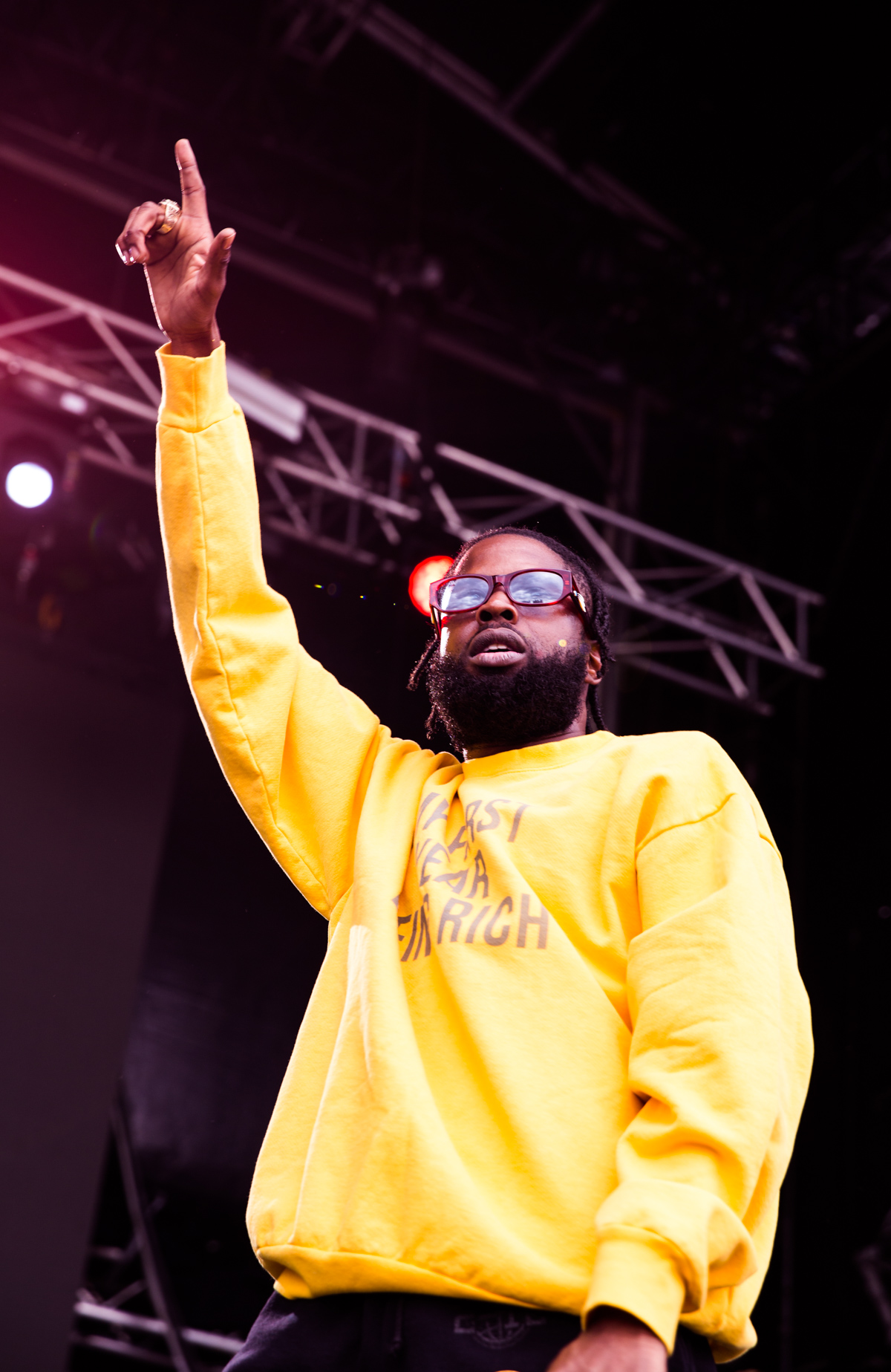 As I ventured over to the Moolin Rouge stage to witness the Rejjie Snow (IRL) the first thing I was met with were fat and heavy bass tones, Rejjies’ DJ hyping up the crowd with a bunch of “WHAT IS UPP GROOOOVINNN” and “ARE YOU READY FOR REJJIE”. He then proceeded into the initial instrumental, following into the track ‘Pink Lemonade’. Out struts Rejjie, bustling with swagger, edging to the front of the stage to let out a massive “Hell Yeahh!”. Some other fan favourites that they performed were ‘D.R.U.G.S’ and ‘Eqyptian Luvr’.