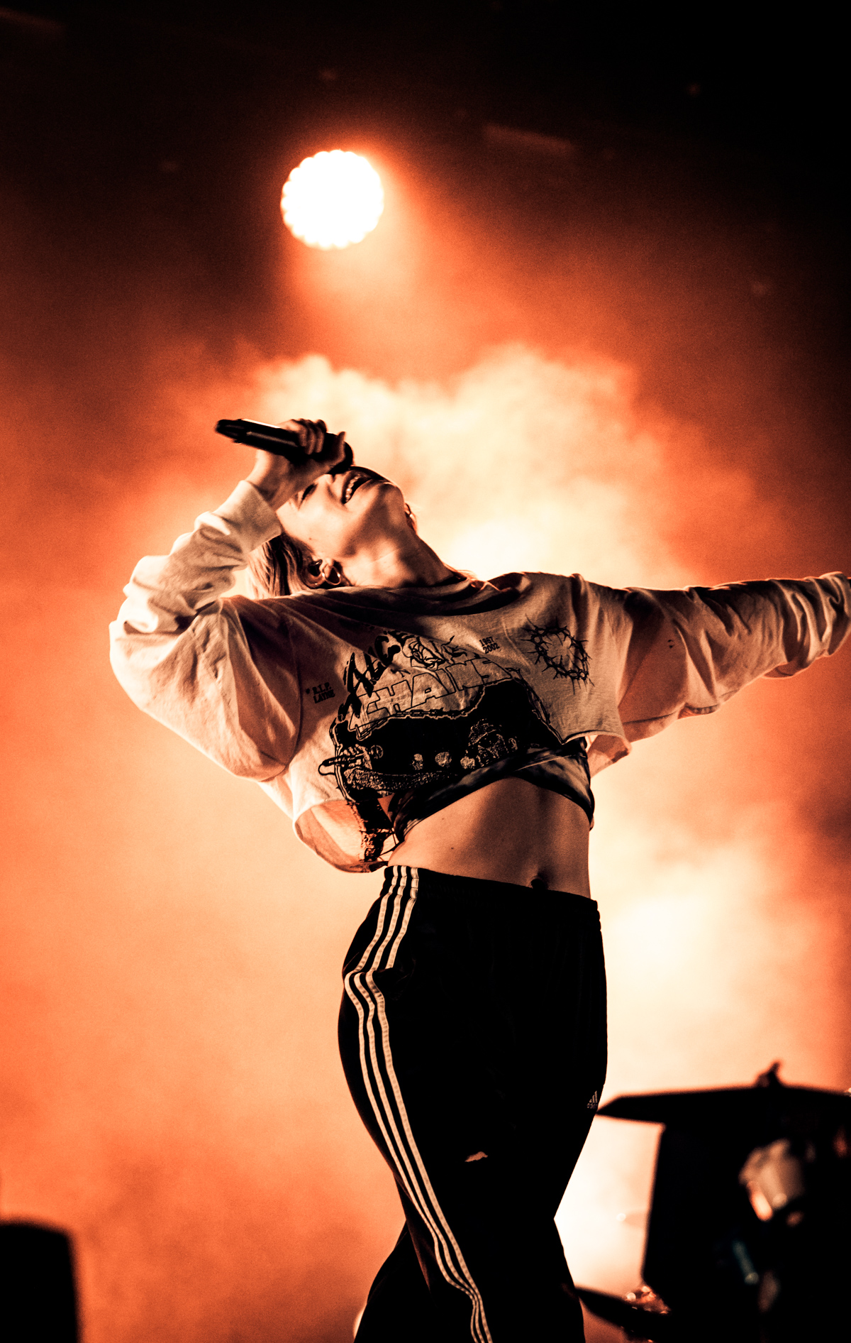 Starting the set with her latest single ‘Bad Guy’, the visual effects and harsh strobing lighting really got across the idea of a dark and menacing performance, pairing up with amazingly spoken-word like singing. From there we were treated to ‘my strange addiction’ and ‘you should see me in a crown’, pausing for a second to address all of the beautiful people in the audience and encouraging them to sing along. After quickly tying her shoe she got back up to the front of stage for ‘idontwannabeyouanymore’. Shortly after finishing the song, she instructed the crowd to “Get down real low, and when the beat comes in I want you to jump like a fucking kangaroo”. It was time for ‘COPYCAT’ and sure as hell, when the beat came in after the whispered “PSYCH”, the entire crowd went from being on the ground to moshing like they were at a hardcore show. It was sick!