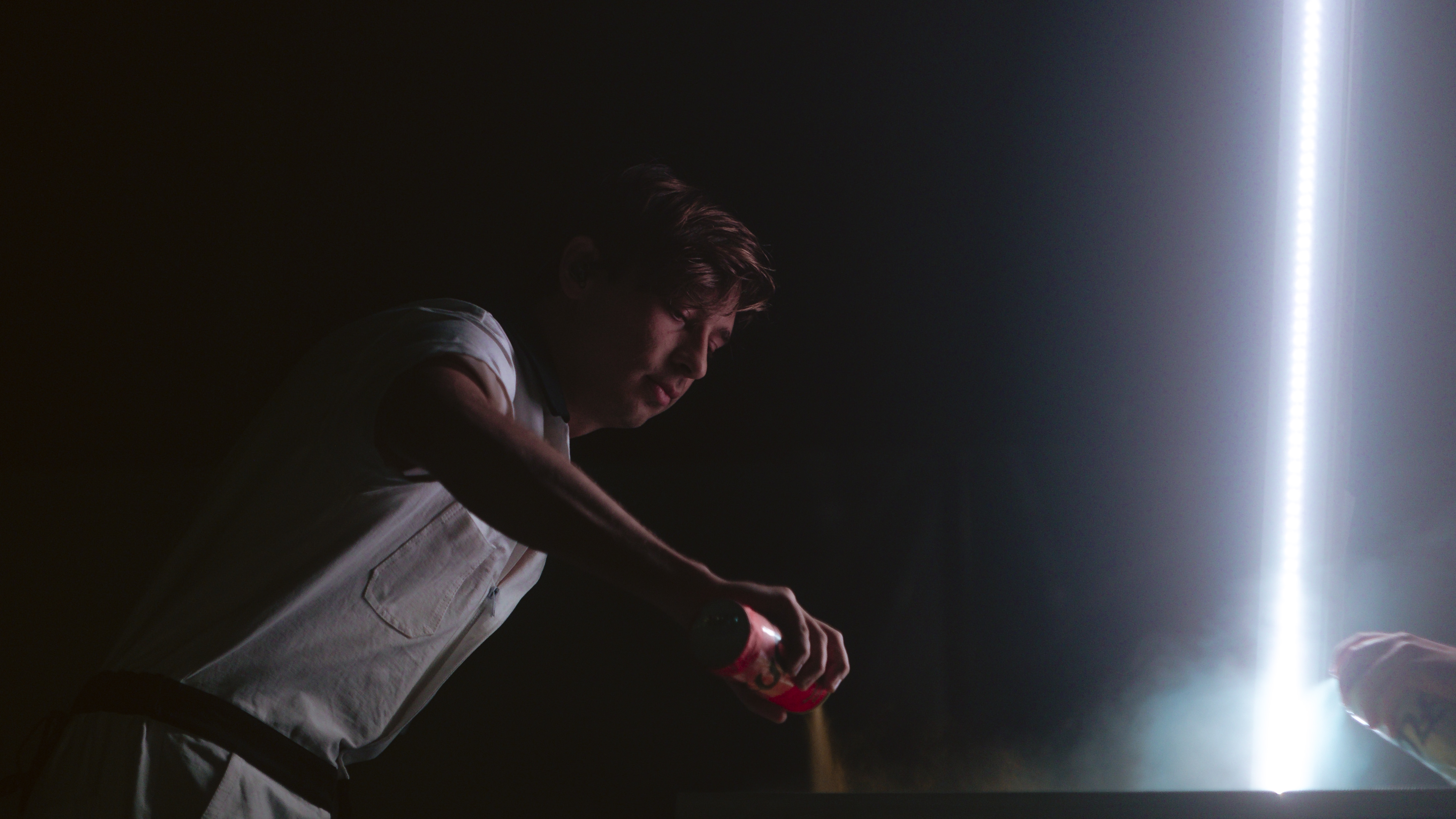 tracks were interlaced with theatrical interludes. This performance truly had it all: welding, spray painting, and Tai Chi backup dancers. Pots were thrown across the stage, and speakers were destroyed with sledgehammers, proving to be a cathartic experience for all.