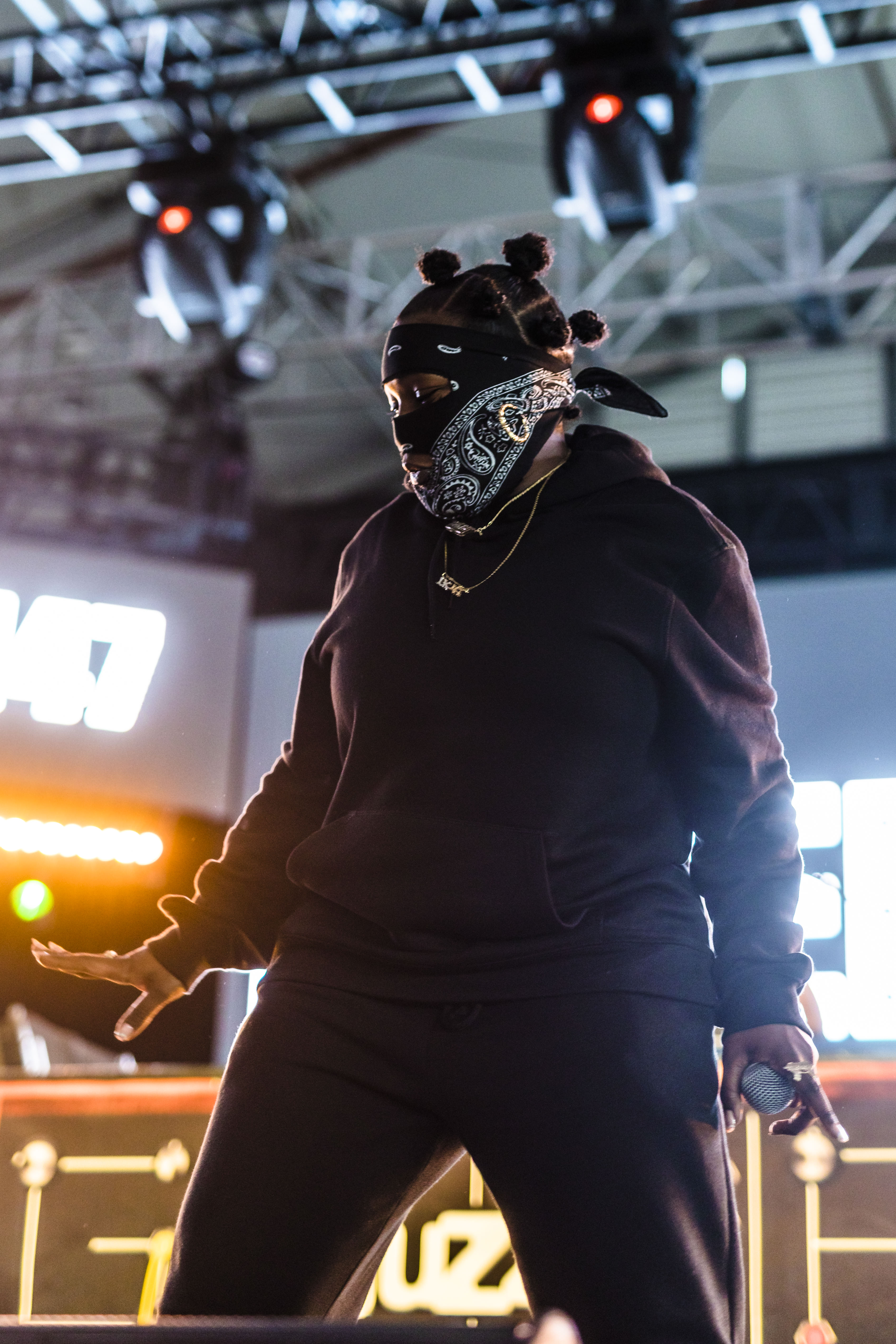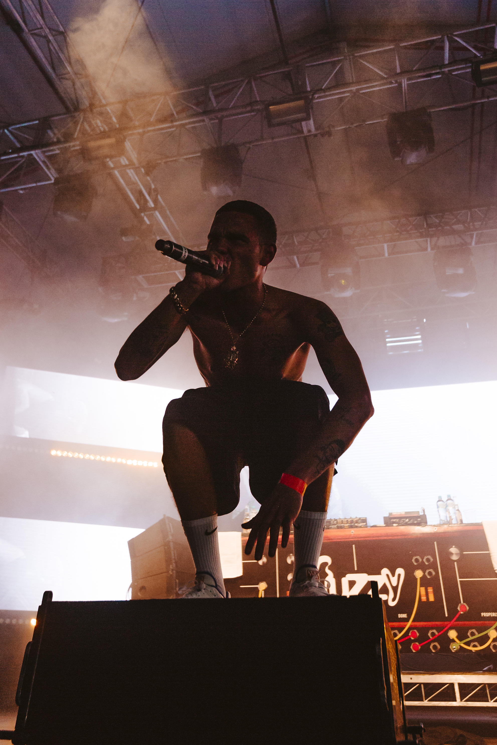 JPEGMAFIA then took the stage with upbeat keyboard melodies, raunchy riffs, and dusty beats echoing throughout his set. JPEGMAFIA’s insane energy coursed throughout the crowd as the American rapper lit up the stage.