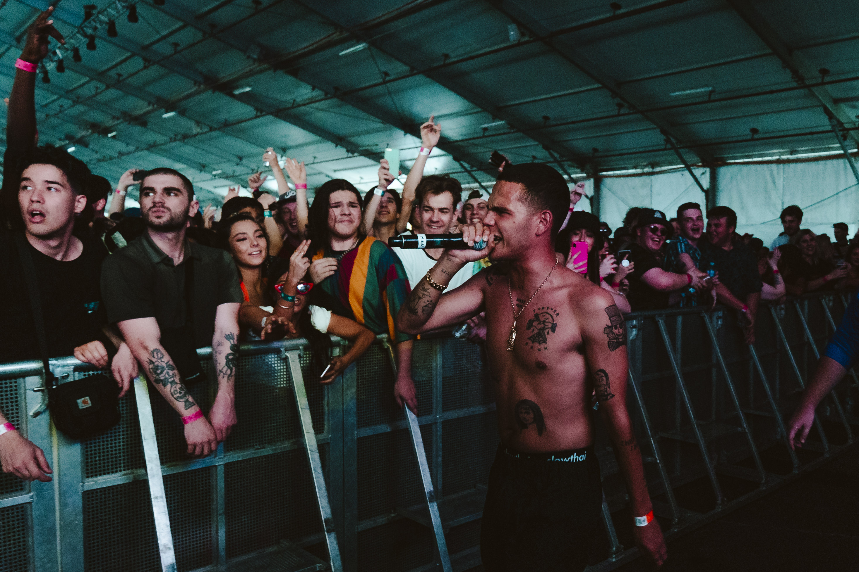 We kicked off our day at the 909 stage with Triple J Unearthed artist, Nerve. The Brisbane based producer, rapper and songwriter commanded the small, but eager crowd with his electric stage presence, all the while wearing one of the best jumpsuits we’ve ever seen.