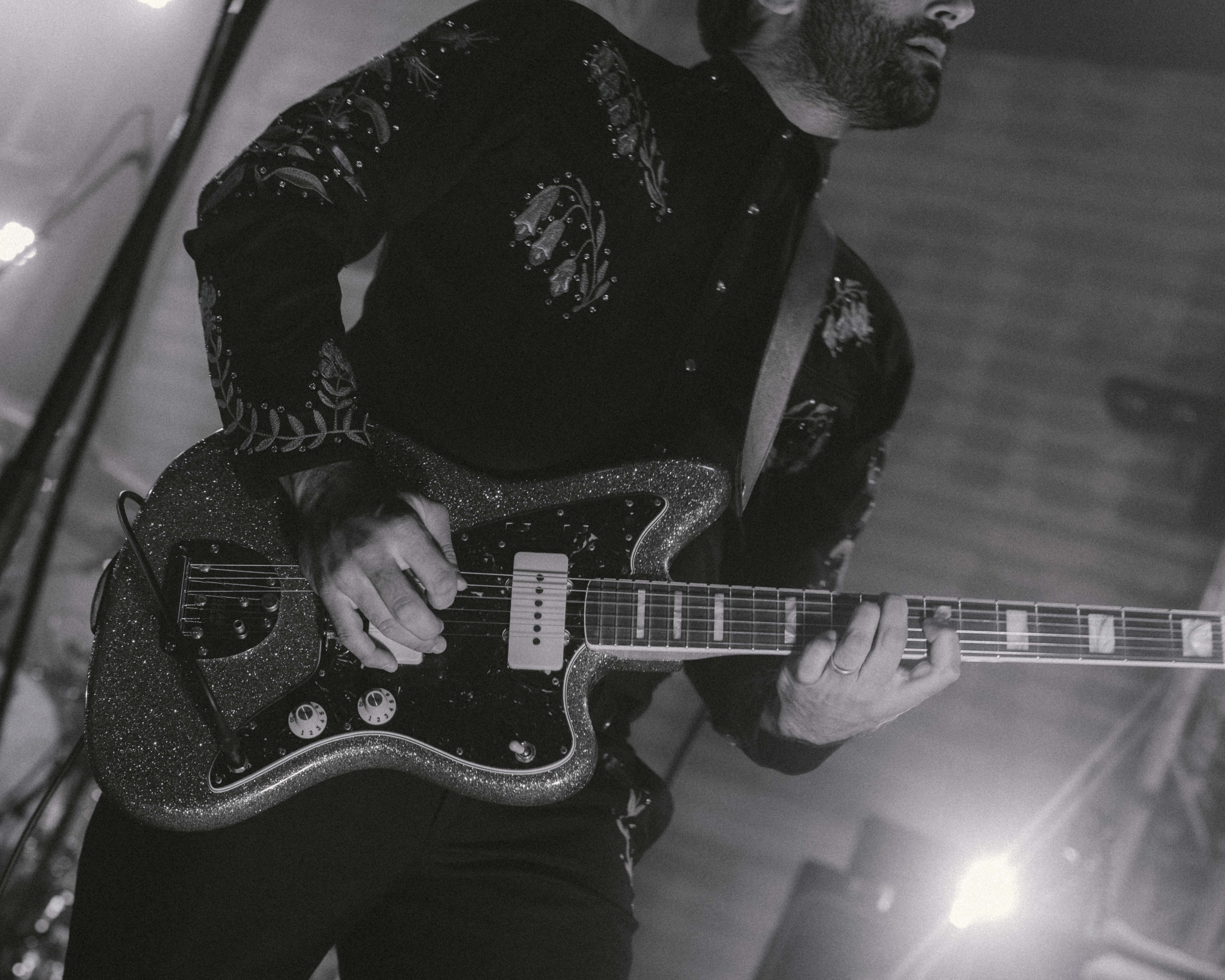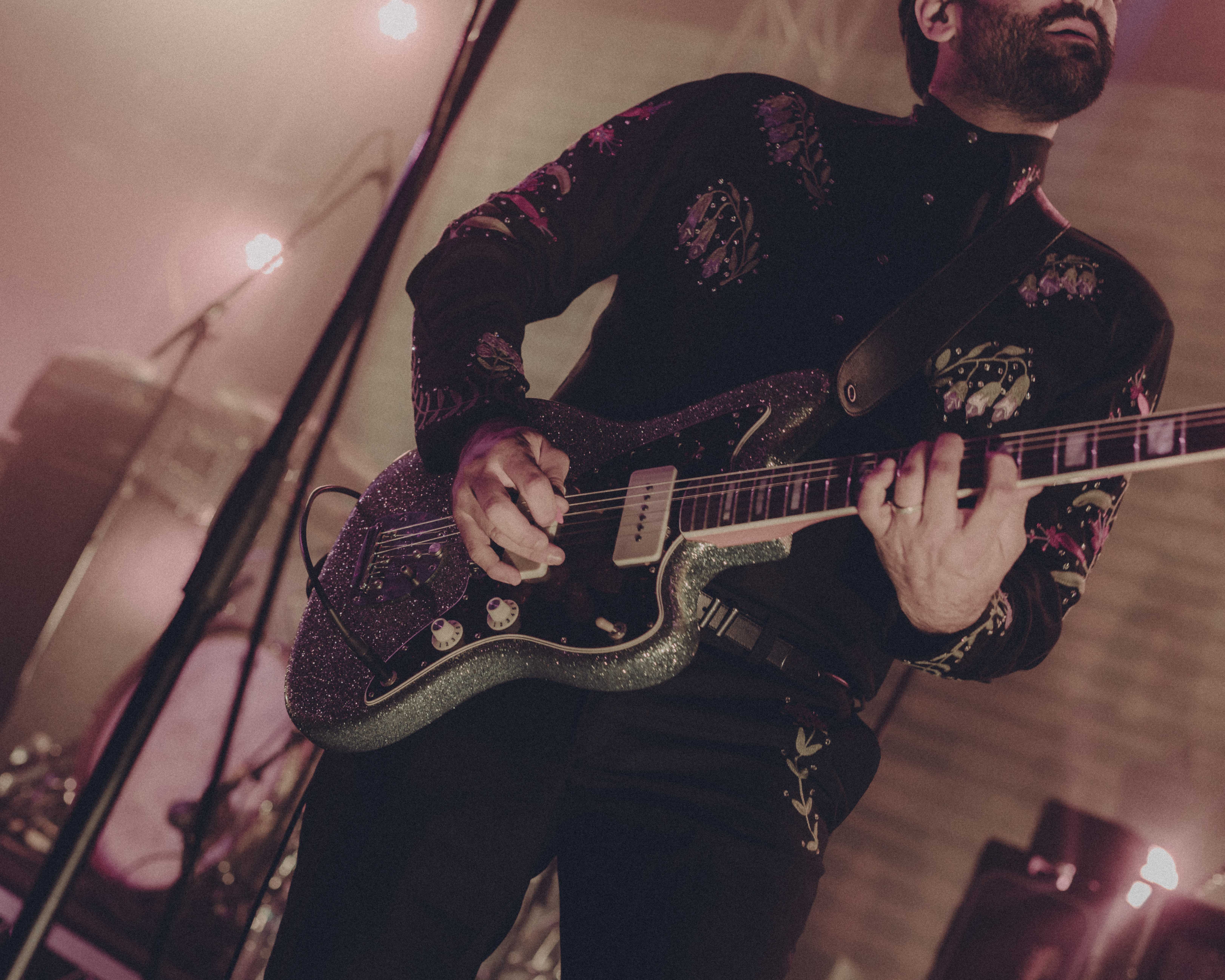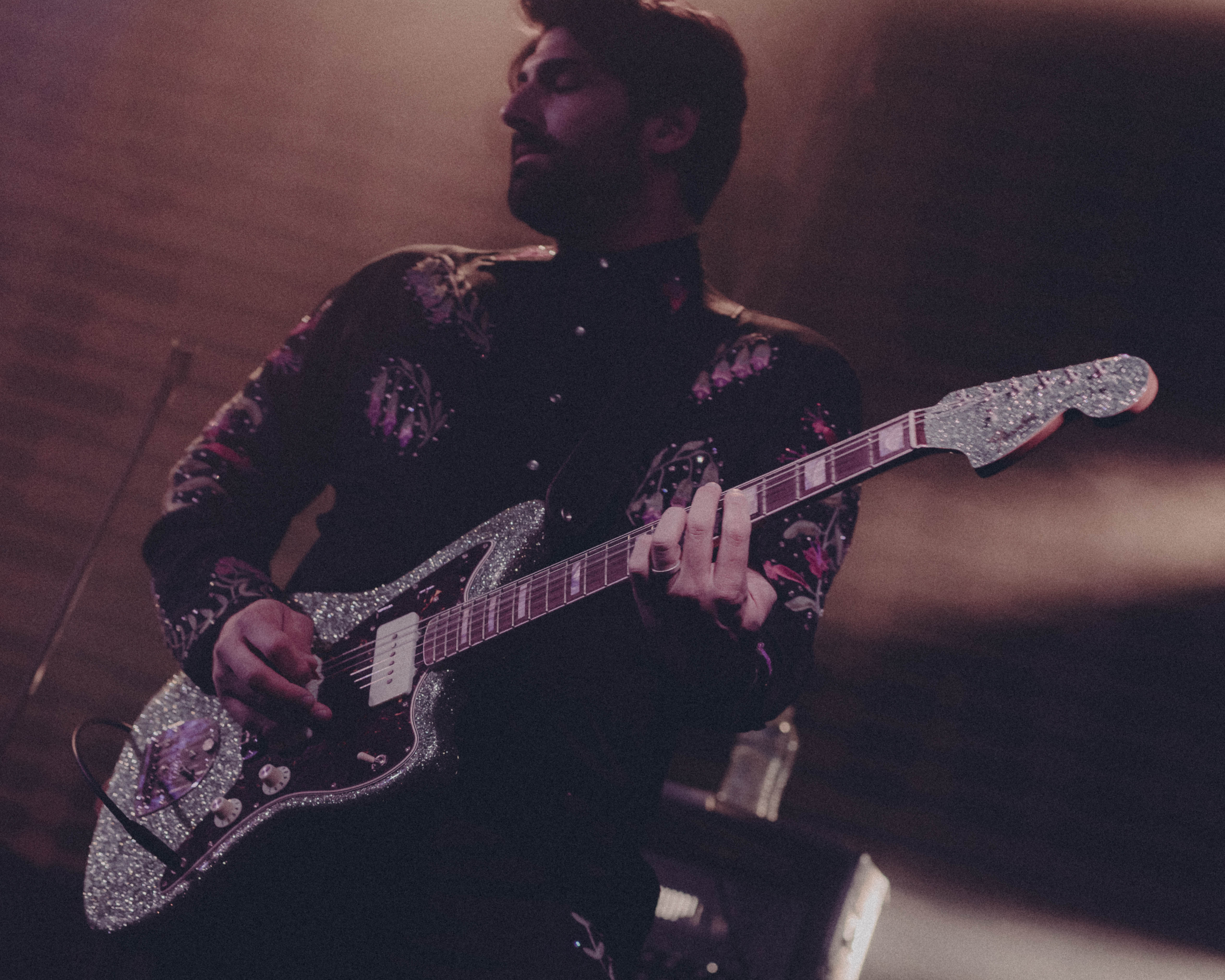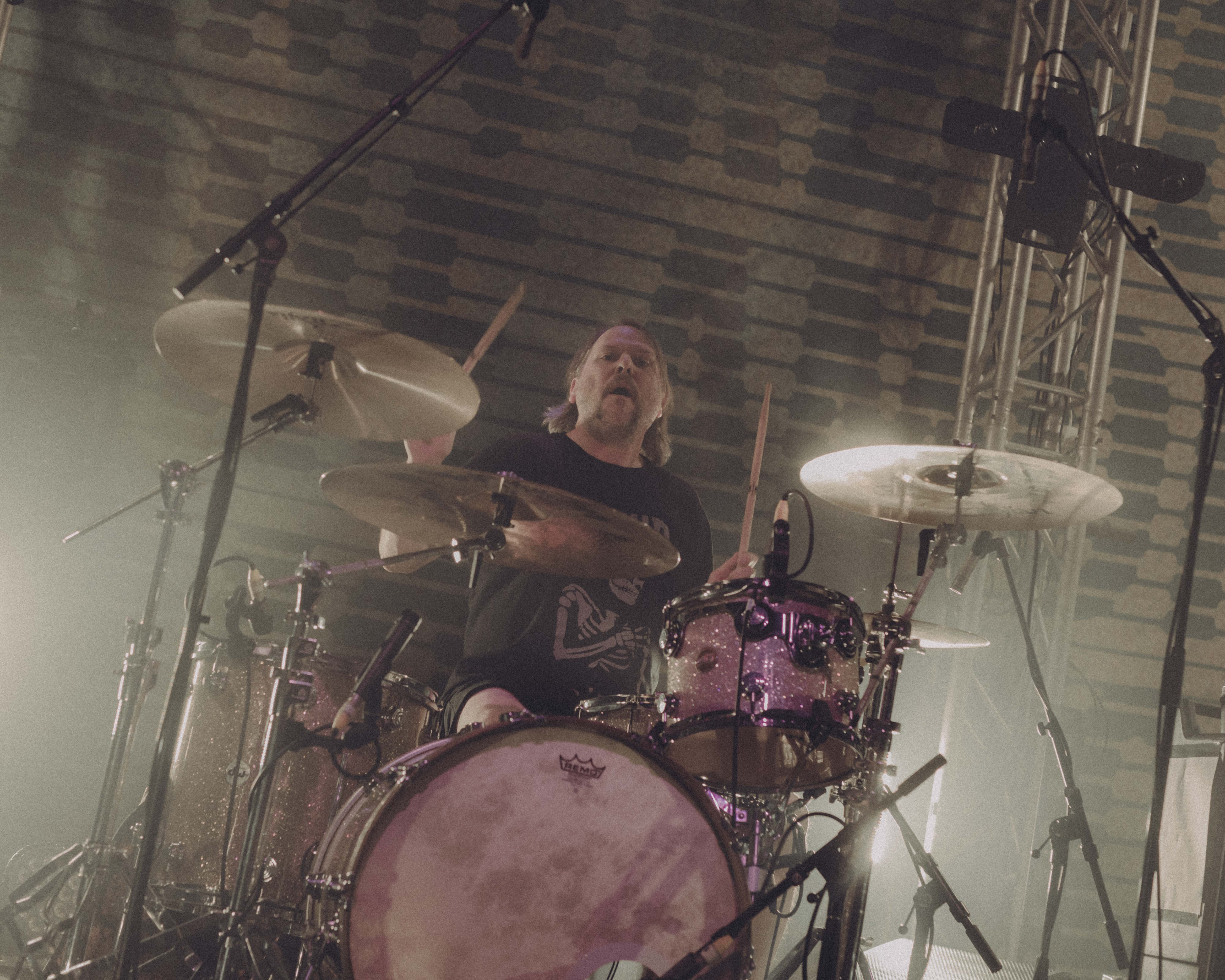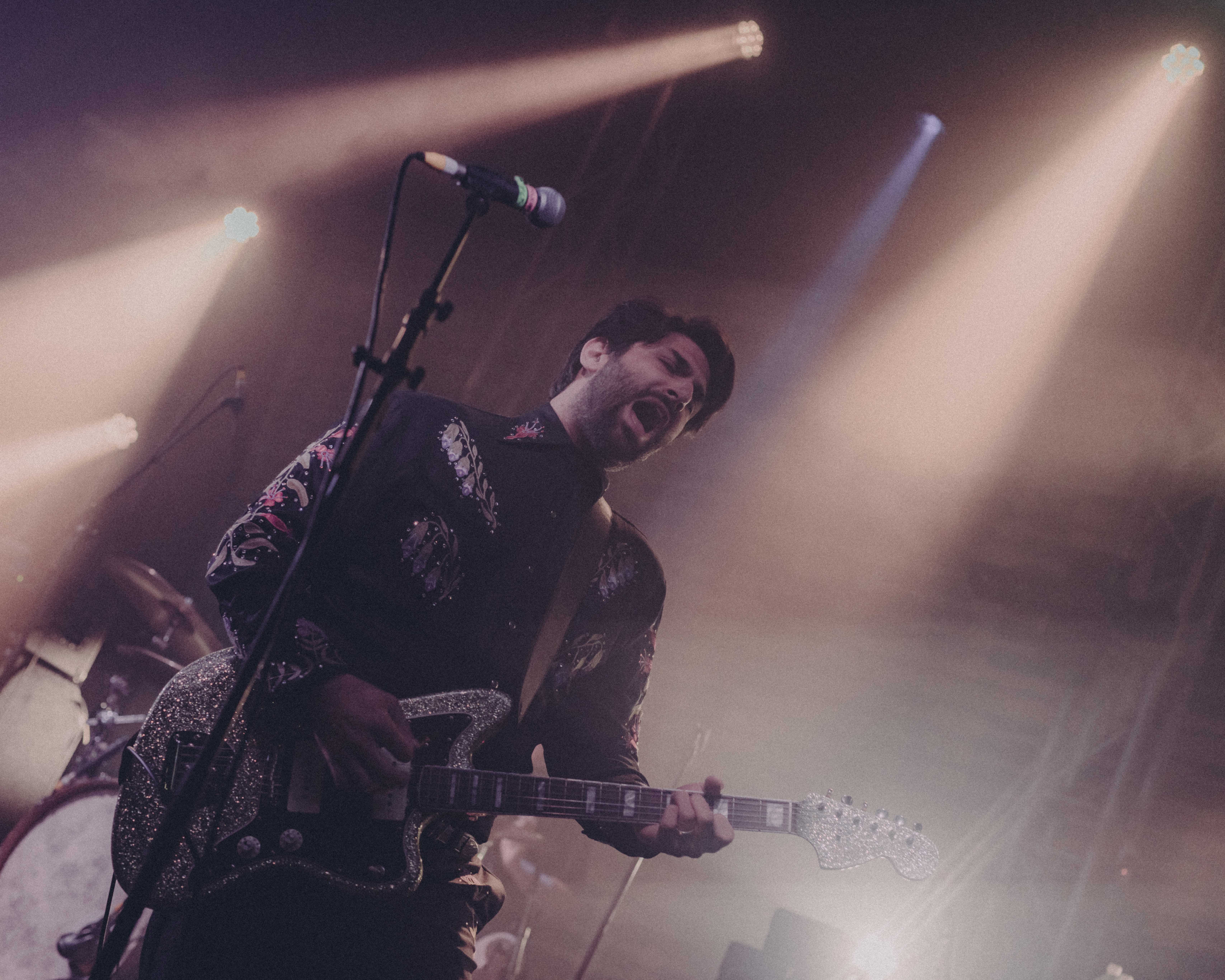 Flexing their notoriously exquisite music taste, Touché greeted us on stage to the tune of Surrender by Cheap Trick. I couldn’t ignore being instantly mesmerised by guitarist Nick Steinhardt’s glittered up western blouse, cowboy boots, glitter Jazzmaster – all decisively matching the silver glitter drum kit in the safe hands of Daniel Pouliot (stepping in for Elliot on this tour as he celebrates new fatherhood). To me, it’s a message that nobody in this band is afraid to be themselves.