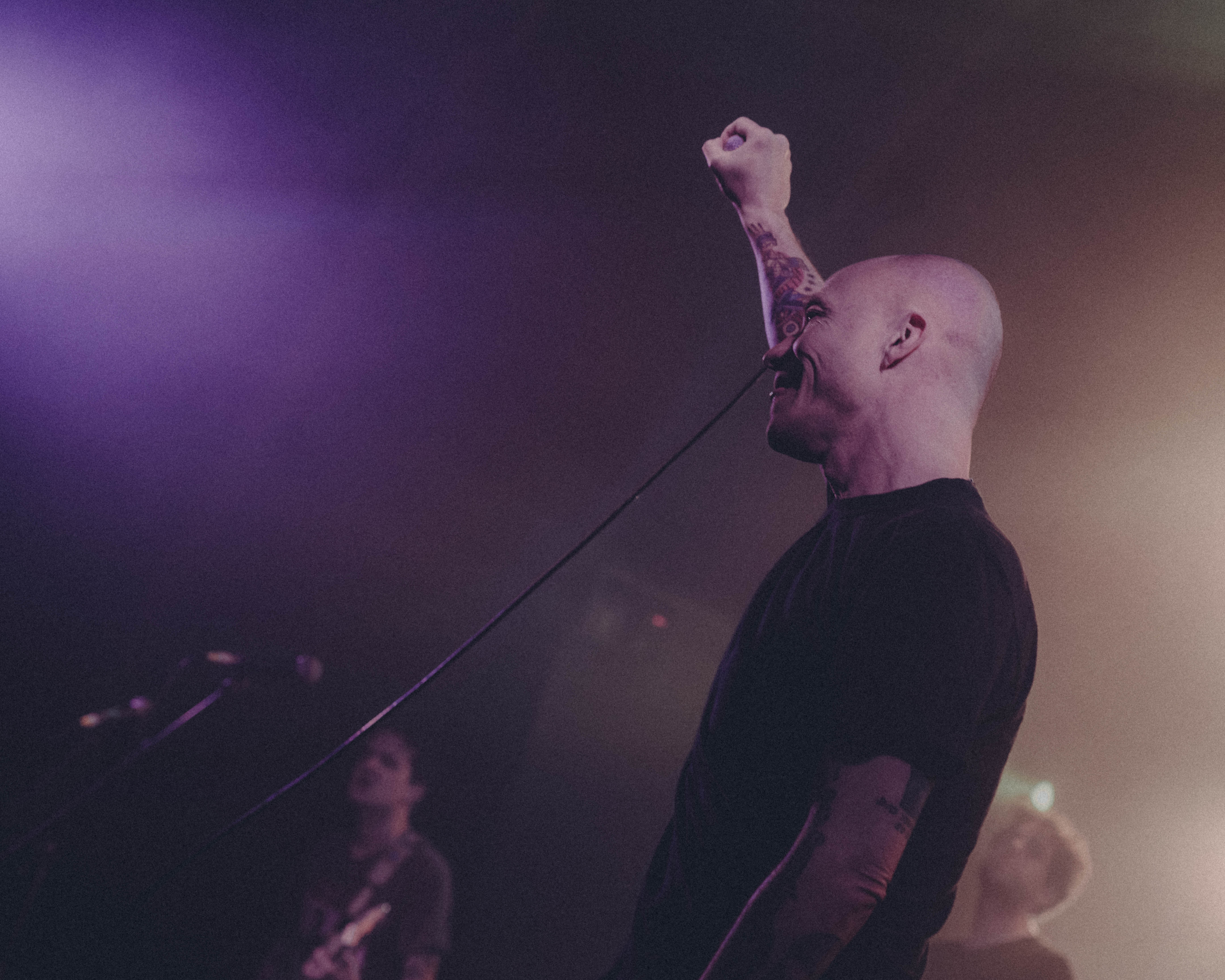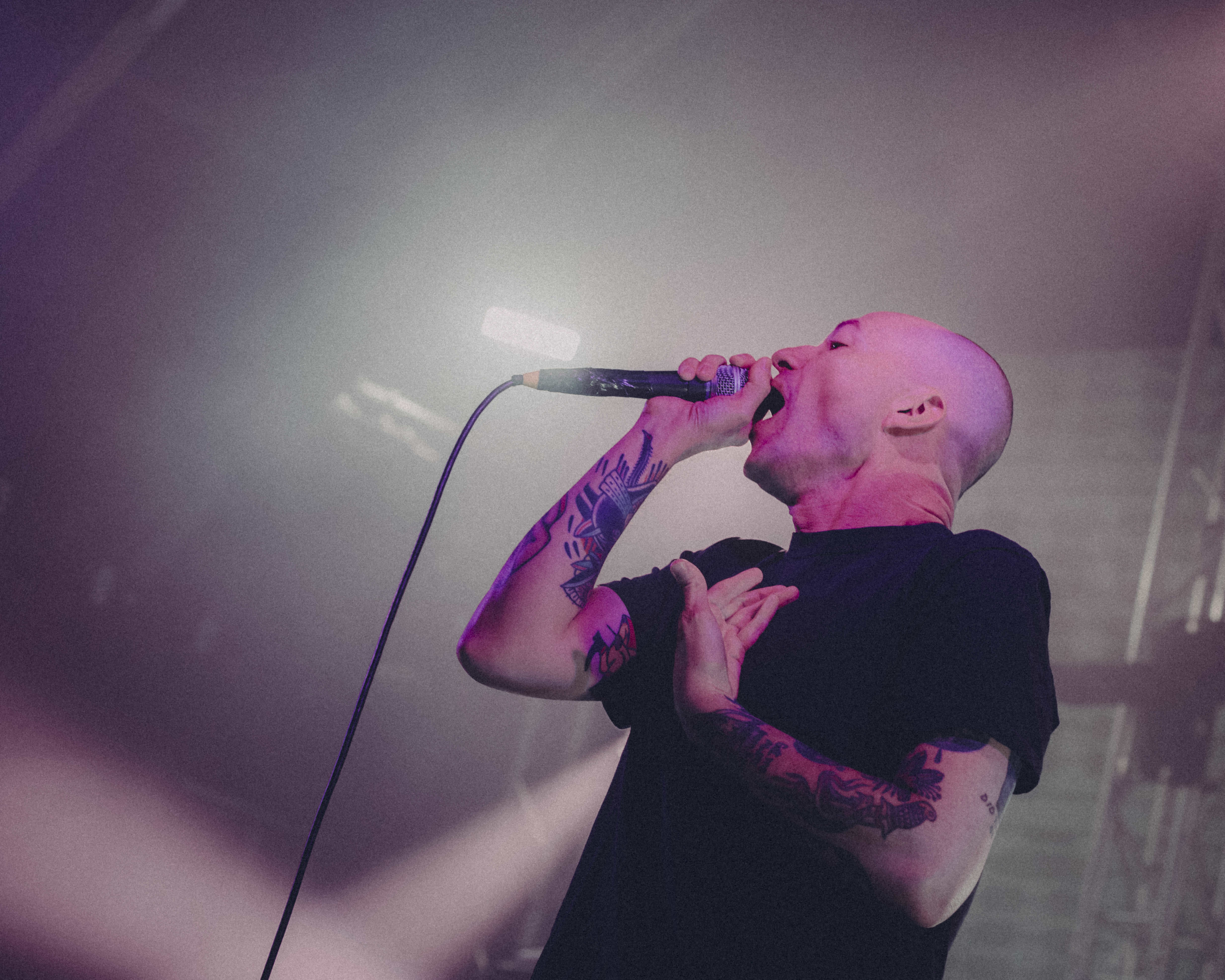 Los Angeles outfit, Militarie Gun, lept on stage with fan-favourite track Ain’t No Flowers. Their style notably less heavy but with no shortage of energy as their bouncy post-punk attitude swept over the crowd who jumped along with the members on stage. The group debuted Kick for us – a currently unreleased track – followed by the punchy and rebellious Big Disappointment. Frontman Ian Shelton reminisced to us about how his old high school band played with Touché Amoré 17 years ago, and never anticipated that he would be taken to Australia by them now. The boys were clearly riding the highs of their success at Outbreak Fest & major global tours, you could feel the same energy just in our small venue. If there wasn’t already a room full of Militarie Gun fans, they surely gained one by the end of the night.