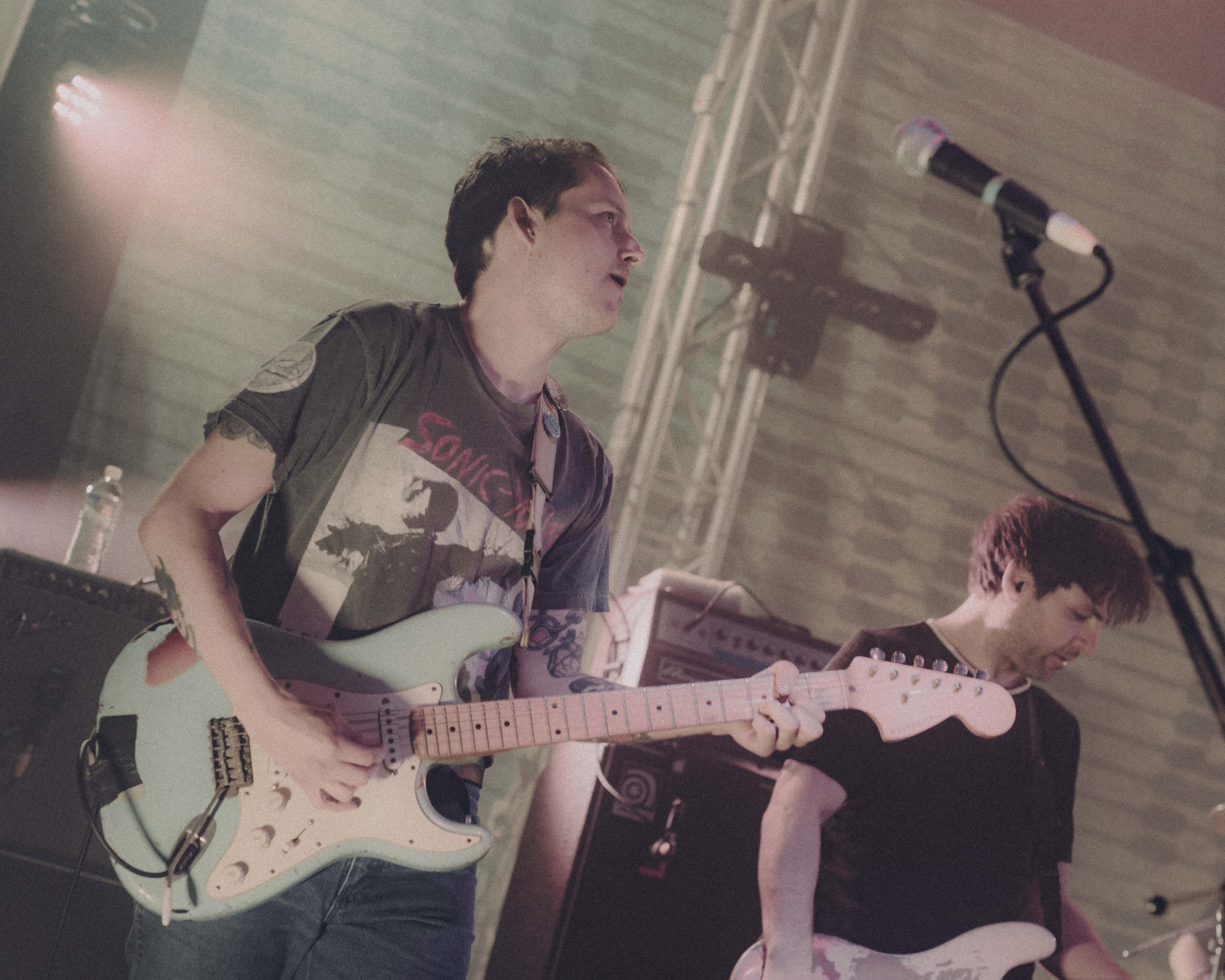 Brisbane 5-piece, sunbleached, started our night with a sweet set of reverb-heavy alt rock tracks. Their atmospheric, slow jams cleanly transitioned into punchy, heavy-hitting vocals and percussion – displaying diverse skill in a captivating crescendo. Chasing a more intimate setting, the frontman joined the barrier-campers who welcomed him with open arms. They finished their segment by introducing us to their heaviest track to date Flowers Grow from Ugly Places, the ending of which paved a strong segway for skramz royalty, Blind Girls.