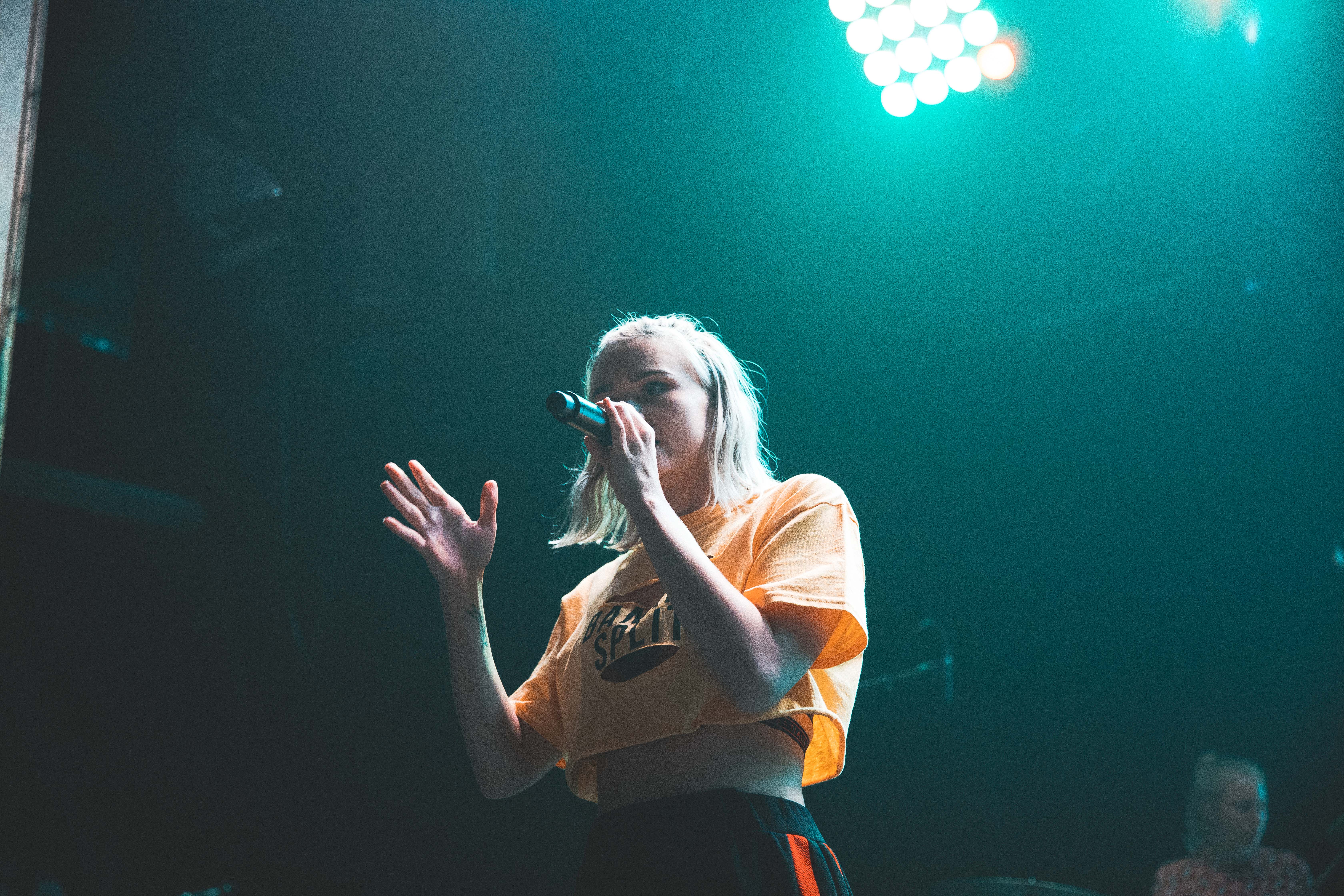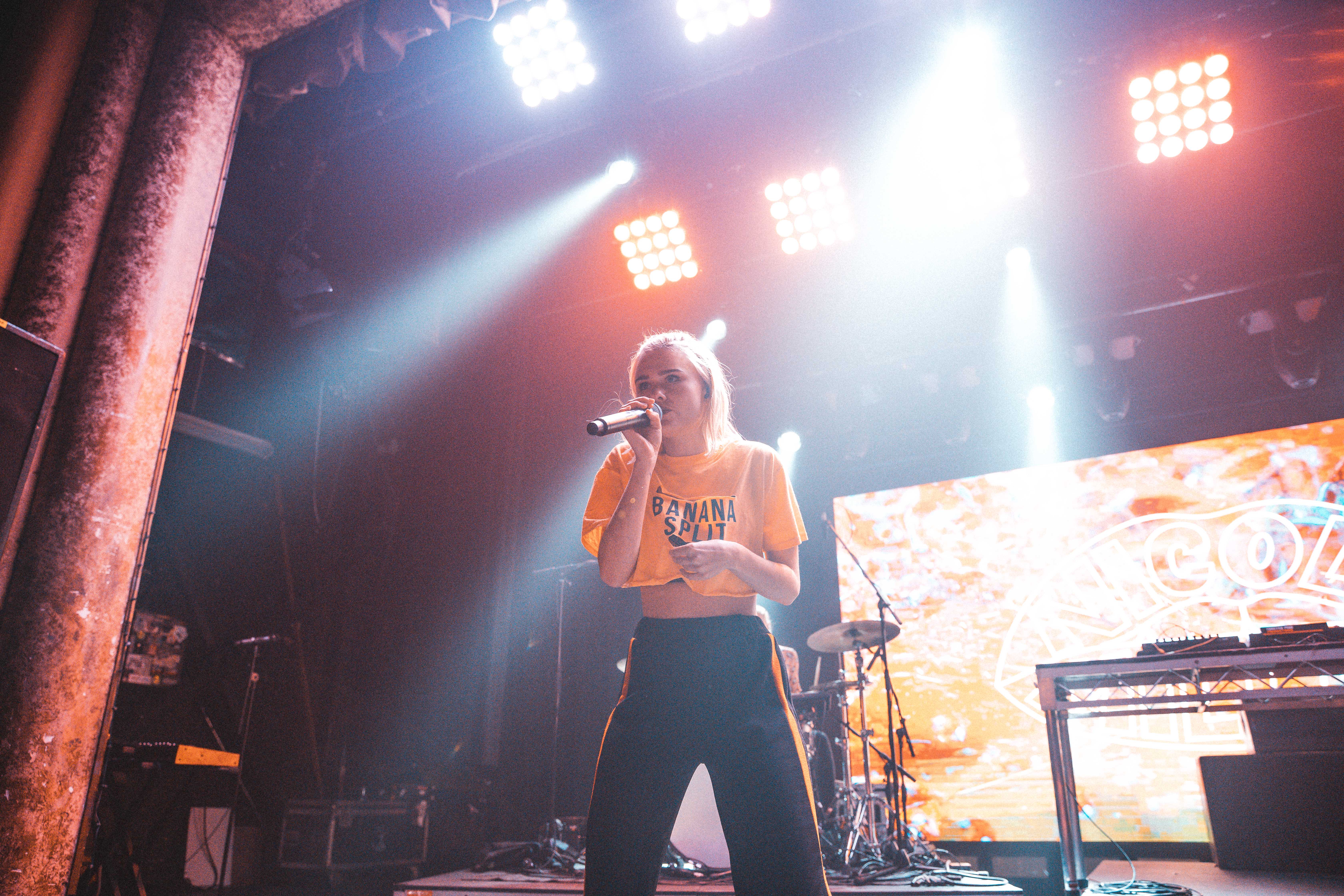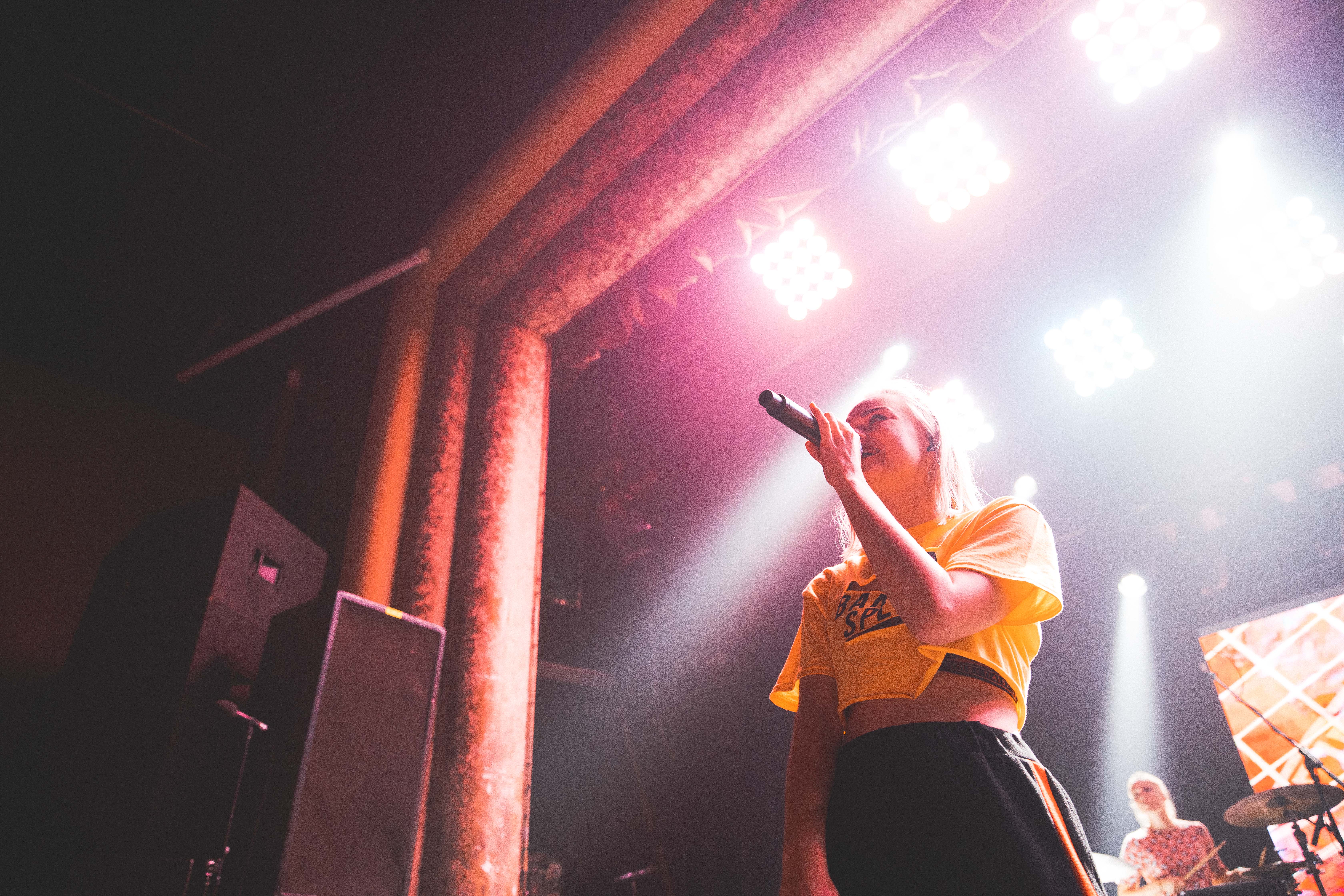 As the crowd gradually grows from the never-ending line waiting out front, the filler tunes cut, the whole room turns red and the home town girl Mallrat bounces on stage. Getting straight into a well-known sing-a-long For Real. Since her strike to fame she has since toured with big names such as TKAY MAIDZA and Thundamentals, and it shows as she charismatically twirls around on stage, caressing the crowd’s ears with Sunglasses and Uninvited and more from her debut EP Uninvited.