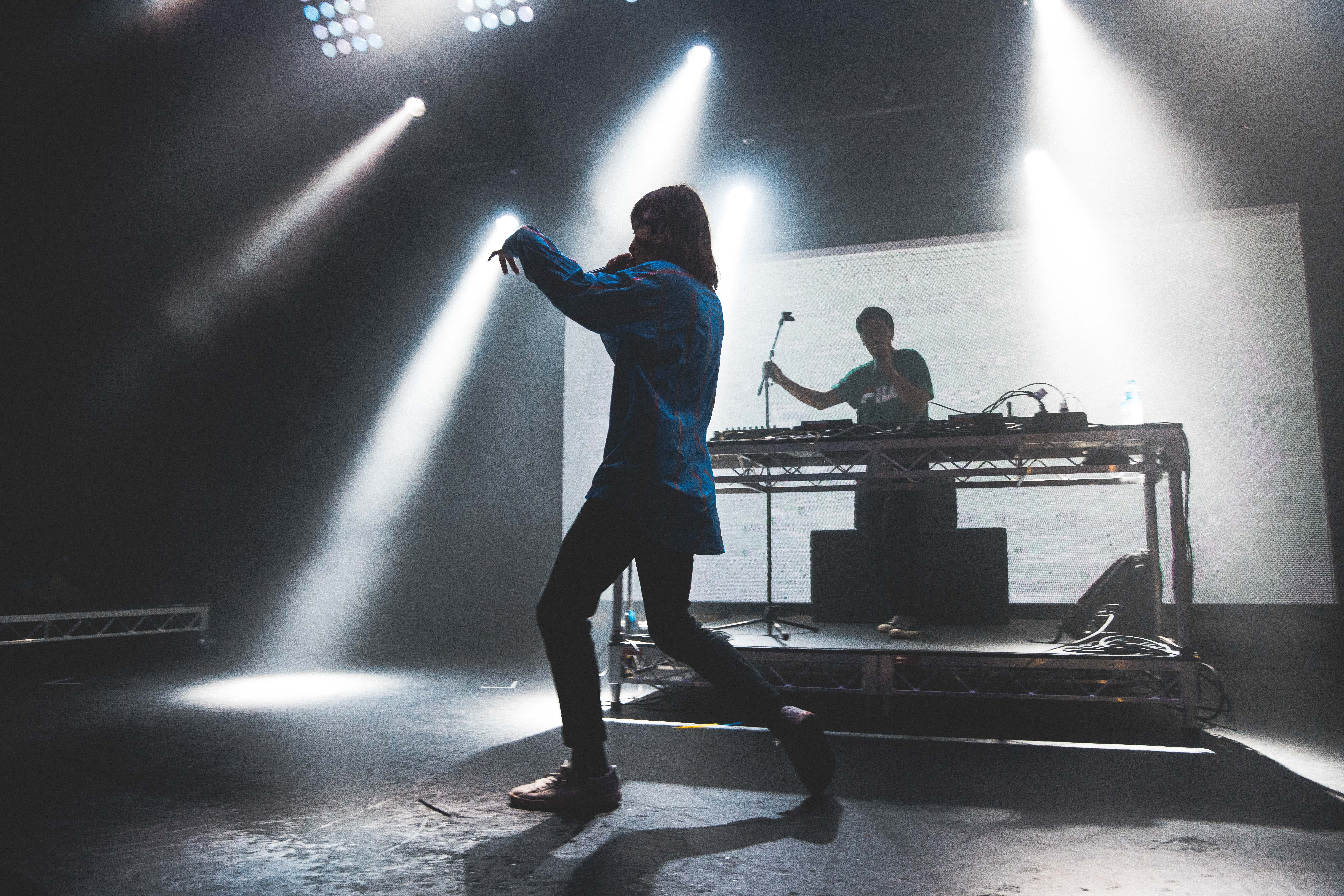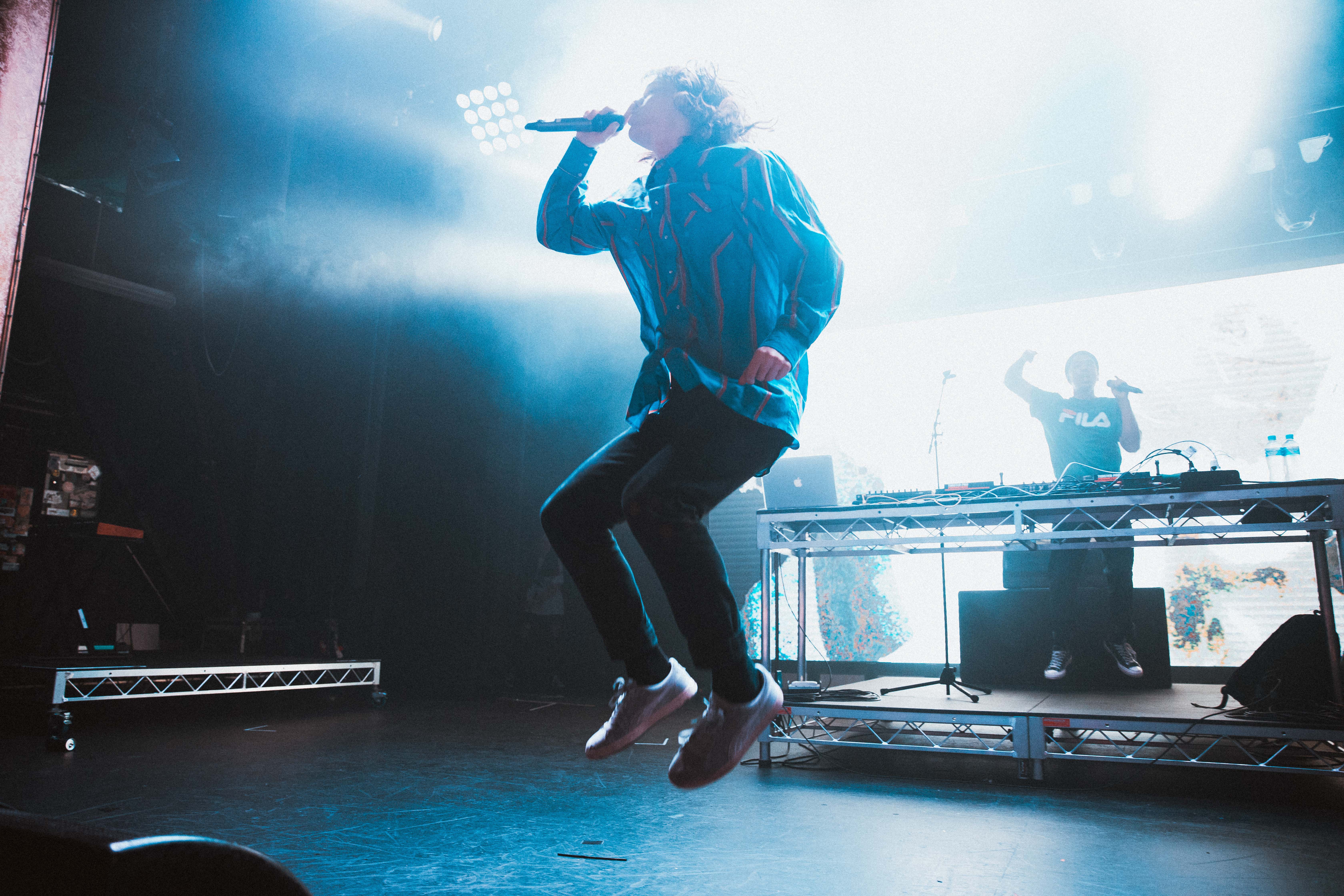 Here it was, the lights cut and the beat to First Light took over and the long haired, indie dream boat bounced on stage getting straight down to business. He and his DJ, Mikey Hunj, performed as a duo as they both took the front of the stage sporting a classic rap show water bottle spray over the crowd. His charisma, long hair and relentless rapping immediately shrouded Tivoli as he continued into Sides – the first single released off the new record Speeding. A surprising amount of energy emanated from the stage while throwing back to 2014 artsy raps with Claude Monet. An energy only produced by the self proclaimed “Chubby Boy”.